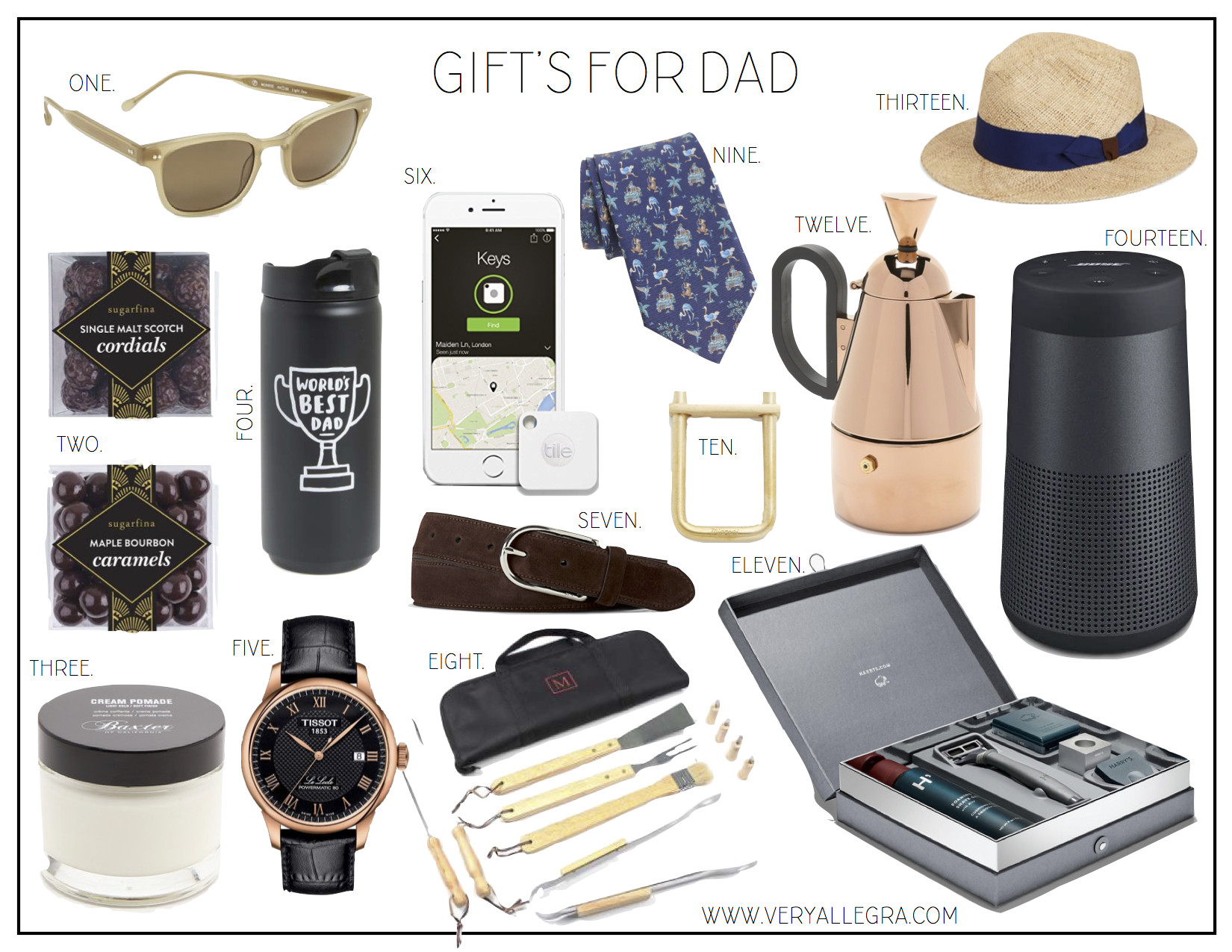 one. Steven Alan Optics Sunglasses // two. Sugarfina ‘Scotch & Bourbon’ Candy Boxes // three. Baxter of California Clay Pomade (my husband uses this stuff) // four. “World’s Best Dad” Tumbler // five. Tissot Watch // six. Tile ‘Key or Wallet’ Finder // seven. Polo Ralph Lauren Belt // eight. Cathy’s Concepts BBQ Tools // nine. SALVATORE FERRAGAMO Tie // ten. Miansai Key Ring // eleven. Harry’s Shave Set // twelve. Tom Dixon Stove Top Brew Set // thirteen. Barbisio Hat // fourteen. Bose Bluetooth Speaker